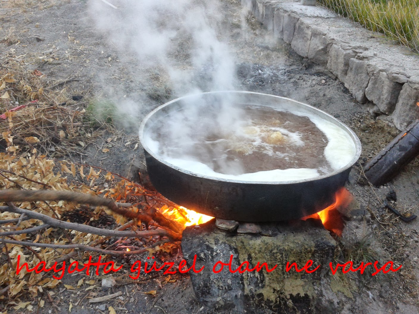 bir önceki postta üzüm hasadımızdan bahsetmiştim.şimdi gelelim pekmez nasıl yapılıyor kısaca bahsetmeye ..önce üzümler güzelce özel toprak katılarak ezildi..kurulan ocakta haşlama denilen bir işlemden geçirildi üzüm suları.işte haşlama kazanları.